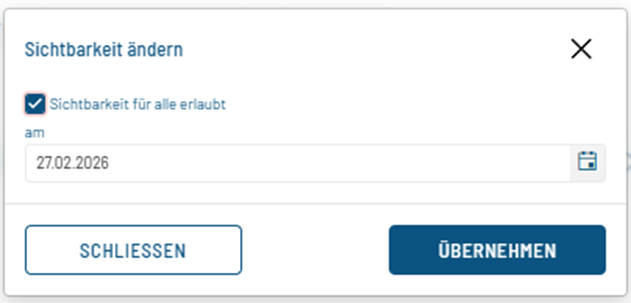 In der Projektübersicht können durch den Prüfer die Sichtbarkeitseinstellungen für weitere Beteilige erweitert werden.