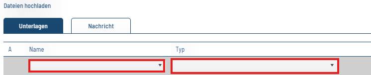 Der jeweilige Fachbereich, an dem sich die Unterlagen nach dem Upload befinden, wird unter dem Dokumenttyp angezeigt.
